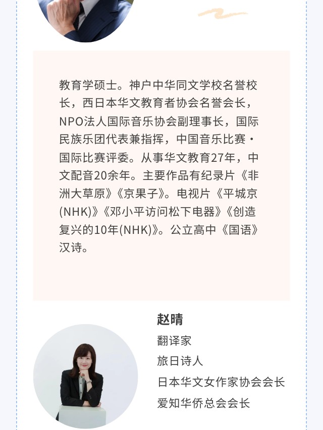 报名进行中…..「家乡的年味」首届日本华语作文大赛荣幸邀请到多位专业的评委专家,他们将以严谨的态度、精湛的专业素养以及公平公正的评审精神,深度解读参赛者的创作。